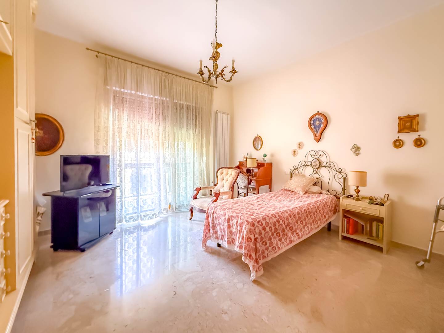 La zona notte comprende due camere da letto spaziose, entrambe arredate, climatizzate e caratterizzate da ottima luminosità naturale. Una delle camere dispone di bagno en suite, rifinito con materiali moderni e pavimentazione lucidata, mentre il bagno padronale, anch’esso completamente rinnovato, è comodo e funzionale.