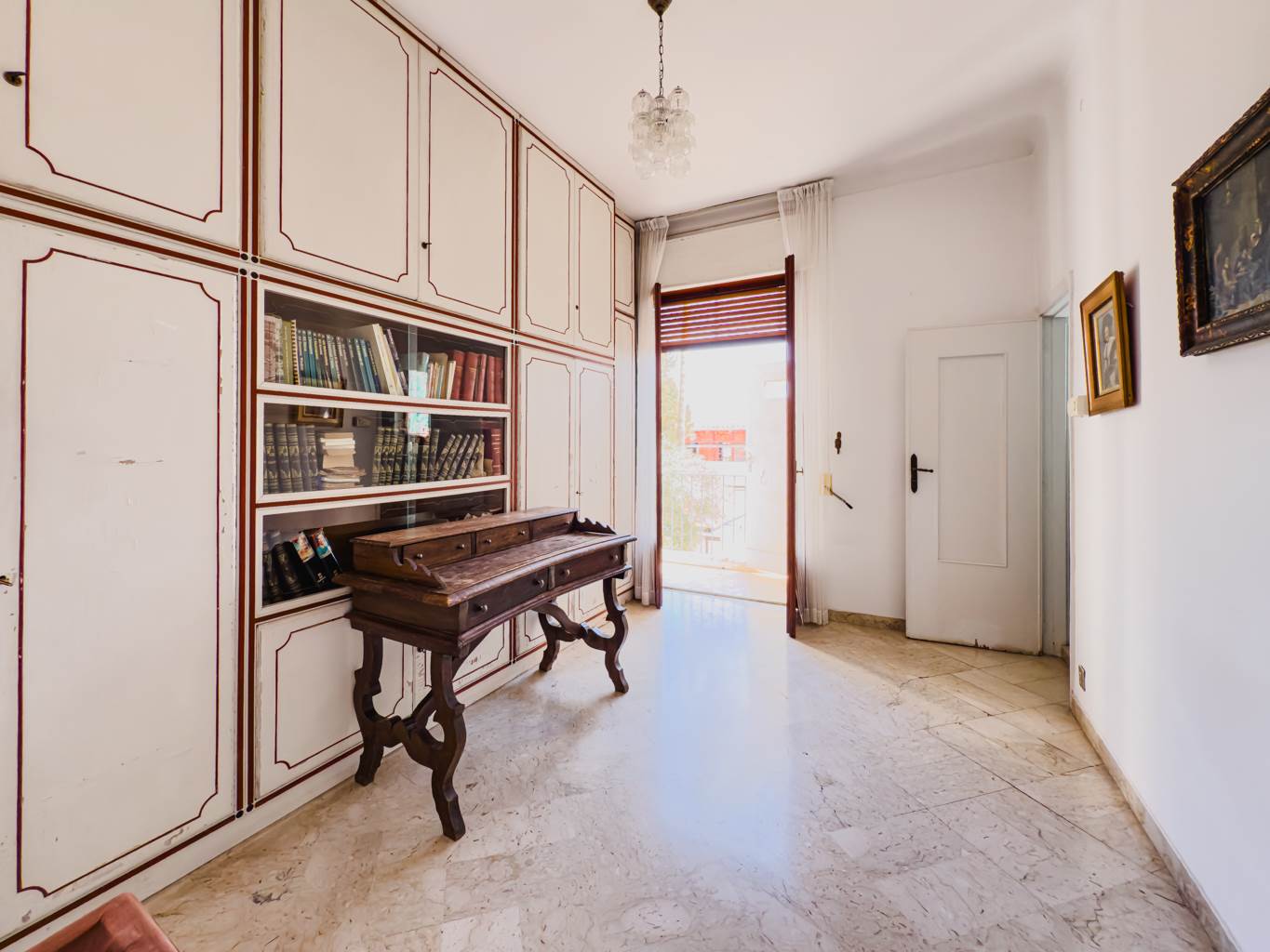 Con una superficie di 250 mq commerciali (220 mq calpestabili), l’immobile si compone di triplo salone, soggiorno/pranzo luminoso, cucina abitabile, tre camere da letto, uno studio, tre bagni e due ripostigli. L’esposizione nord-sud e il balcone regalano luce naturale durante tutta la giornata.