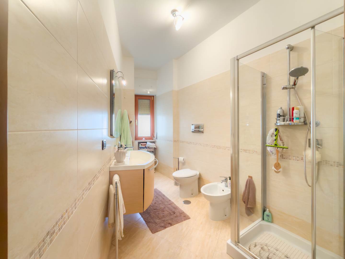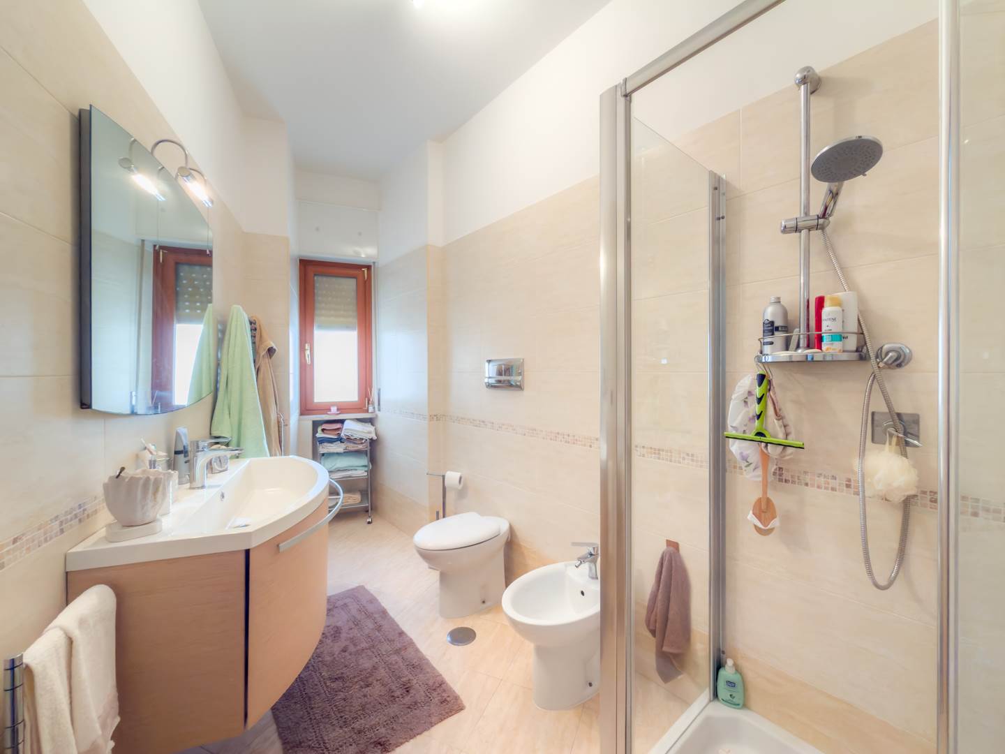 L’immobile dispone di due bagni: uno principale, ampio e ben rifinito con doccia, e un secondo bagno di servizio con lavanderia. È presente riscaldamento autonomo. L’appartamento viene locato arredato, come da immagini, con possibilità di rimuovere parte degli arredi previo accordo.