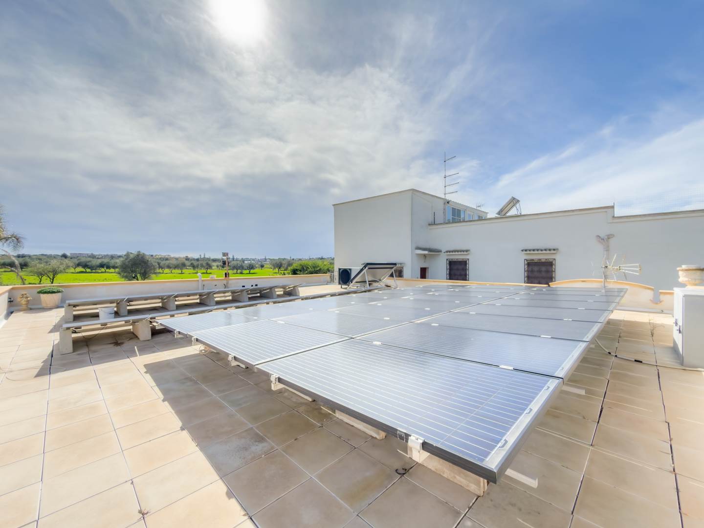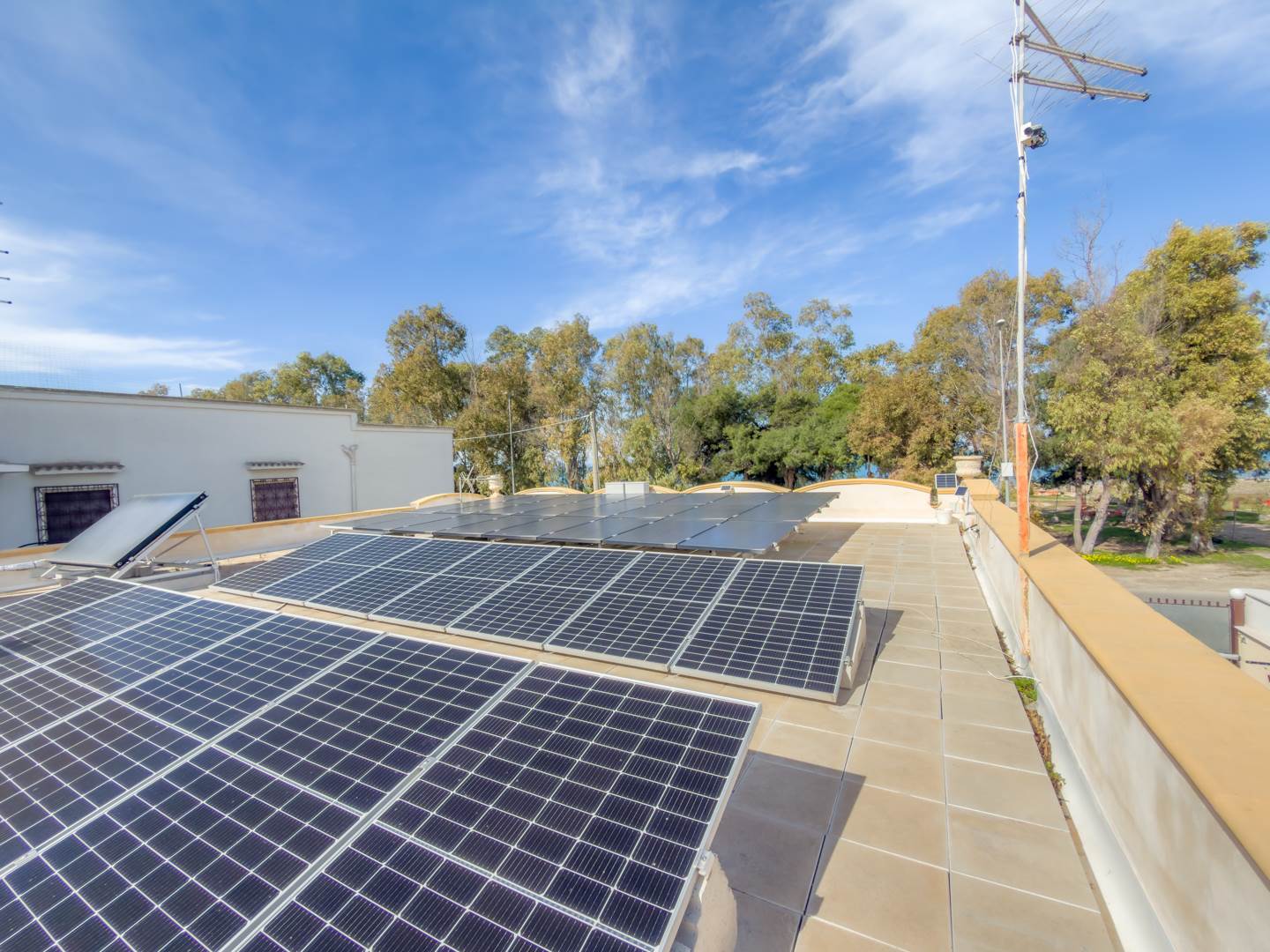 La ristrutturazione del 2022 ha interessato facciata, infissi e aggiornamento degli impianti, rendendo la casa pronta da vivere. Il riscaldamento è autonomo, sono presenti climatizzatori inverter e sistema di videosorveglianza. Sul terrazzo è installato un impianto fotovoltaico che contribuisce in modo significativo all’efficienza energetica dell’immobile, elemento sempre più rilevante in termini di risparmio e valorizzazione nel tempo.